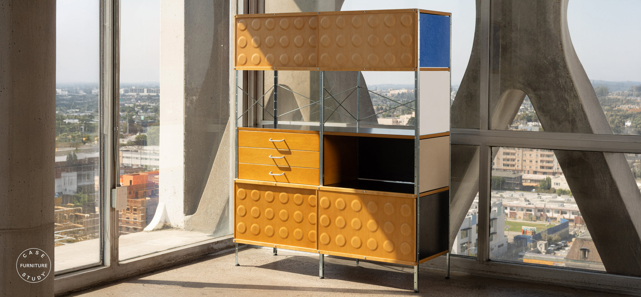 Modernica の Case Study Furniture® ストレージ ユニットは、引き出しオプション、37 種類のグラスファイバー カラー パネル、4 種類の木材、および 3 種類のハードウェアから選択して完全にカスタマイズできます。各ユニットは注文を受けてから構築され、家庭とオフィスの両方に適しています。ご相談については、ロサンゼルス ショールーム (323-933-0383) までお問い合わせください。カリフォルニア州ロサンゼルスで製造されています。
